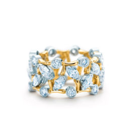 With an intensity that rivals the night sky, Tiffany Victoria celebrates the blazing brilliance of Tiffany diamonds. Alternating mixed-cut diamonds create a striking constellation of light.